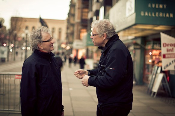 Dom var så inne i ett engagerat samtal på Avenyn häromdagen, att dom inte märkte att jag nästan var inpå dom med kameran. När dom upptäckte mig sa jag ”paparazzi” och det utlöste ett gapskratt som för en kort stund förenade oss alla tre.