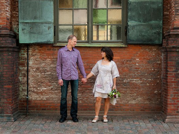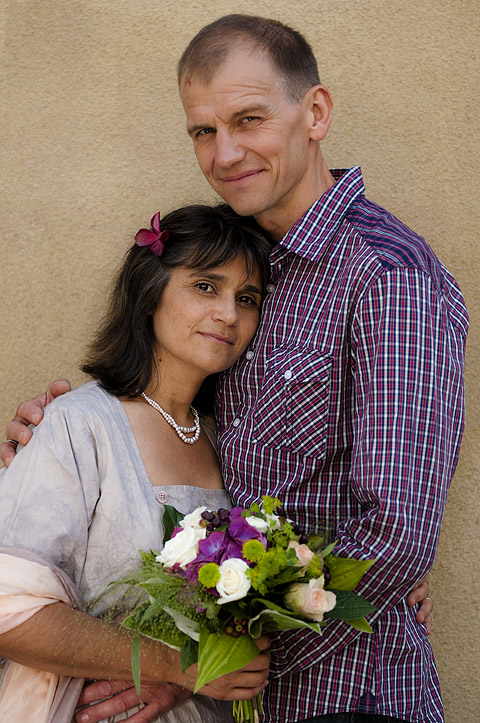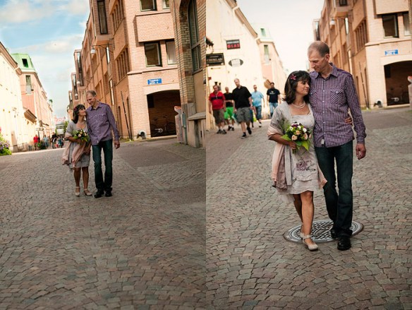 Efter den lilla enkla men vackra rådhusvigseln tog vi lite porträttbilder runt Kronhuset. Därefter begav vi oss vi till Härryda där brudparet bjöd på en hejdundrande fest för sina nära och kära. Vi var väl drygt 50 personer som samlats för att fira brudparet. Först med välkomstdrink och mingel ute på den magnifika gården, sen bjöds det på italiensk buffé i en lada som Mats röjt, fixat, snickrat och ordnat så tjusigt att Ernst och Martin hade varit gröna av avund om dom hade varit med bland dom inbjudna.