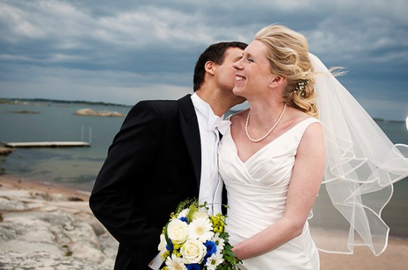 Annika och Alf-Gunnar gårdagens supercoola brudpar trotsade vädrets makter och gjorde sin porträttfotografering vid klipporna i Fiskebäck enligt våra ursprungliga planer. Regnet hängde i molnen, men vi chansade och precis när vi var klara så började det regna.
