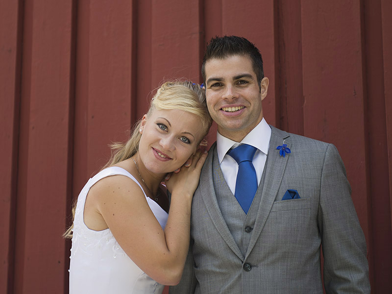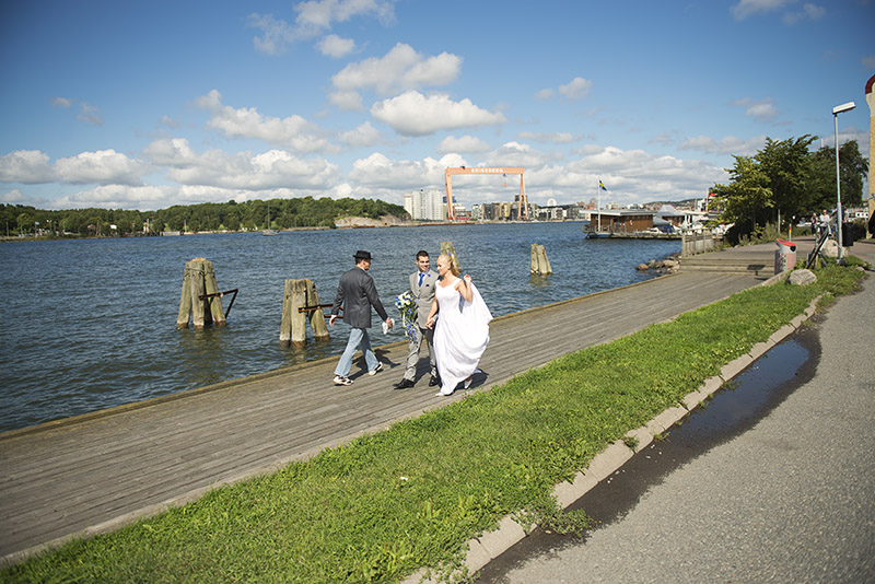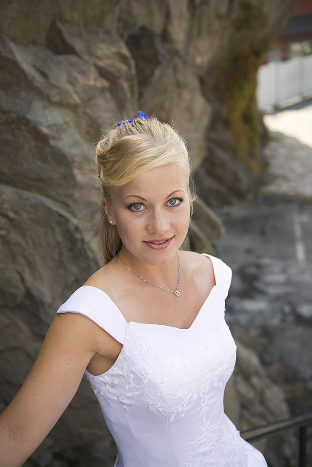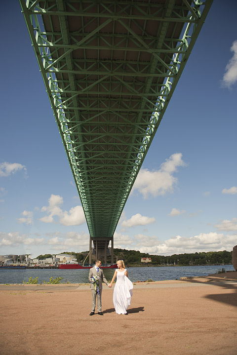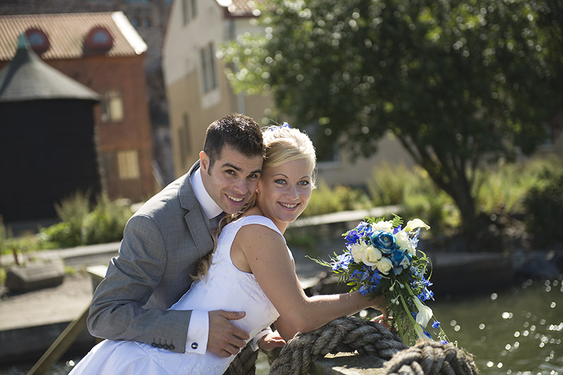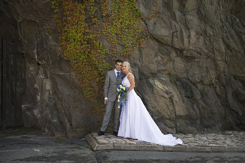 Kan ni tro att den här vackra bruden är fastighetsskötare?! Jag tycker hon är coolare än coolast och Christoffer muskelknutten, som lyfter upp henne lika lätt som om hon vore en tändsticka! Jag blev väl underhållen när vi tog porträttbilderna, för även om jag styr upp fotograferingen ganska hårt så finns det utrymme för eget bus och påhitt som ni kanske kan se på några bilder.