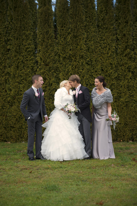 Kära, lyckliga och glada på sin bröllopsdag, och till synes obesvärade framför kameran (mycket tack vare provfotograferingen – vill jag tro i alla fall) trotsar de isande kall vind och ser så där coola ut så man nästan börjar undra om man jobbar och faktiskt får betalt för det här, eller bara leker lite. När det blev lite för kallt bjöd Janne upp till en salsadans för att hålla värmen och det förstärkte ju den känslan.